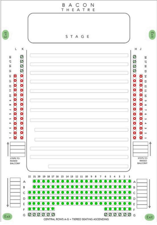 Please note, there are a number of seats blocked off to allow for comfort within the auditorium. Wheelchair & Carer spaces are also automatically blocked off. To book these, please call Box Office. In most cases, the balcony will only open when a certain number of sales has been reached for an event. Those highlighted in red have a restricted view, and may be available to purchase at a lower cost