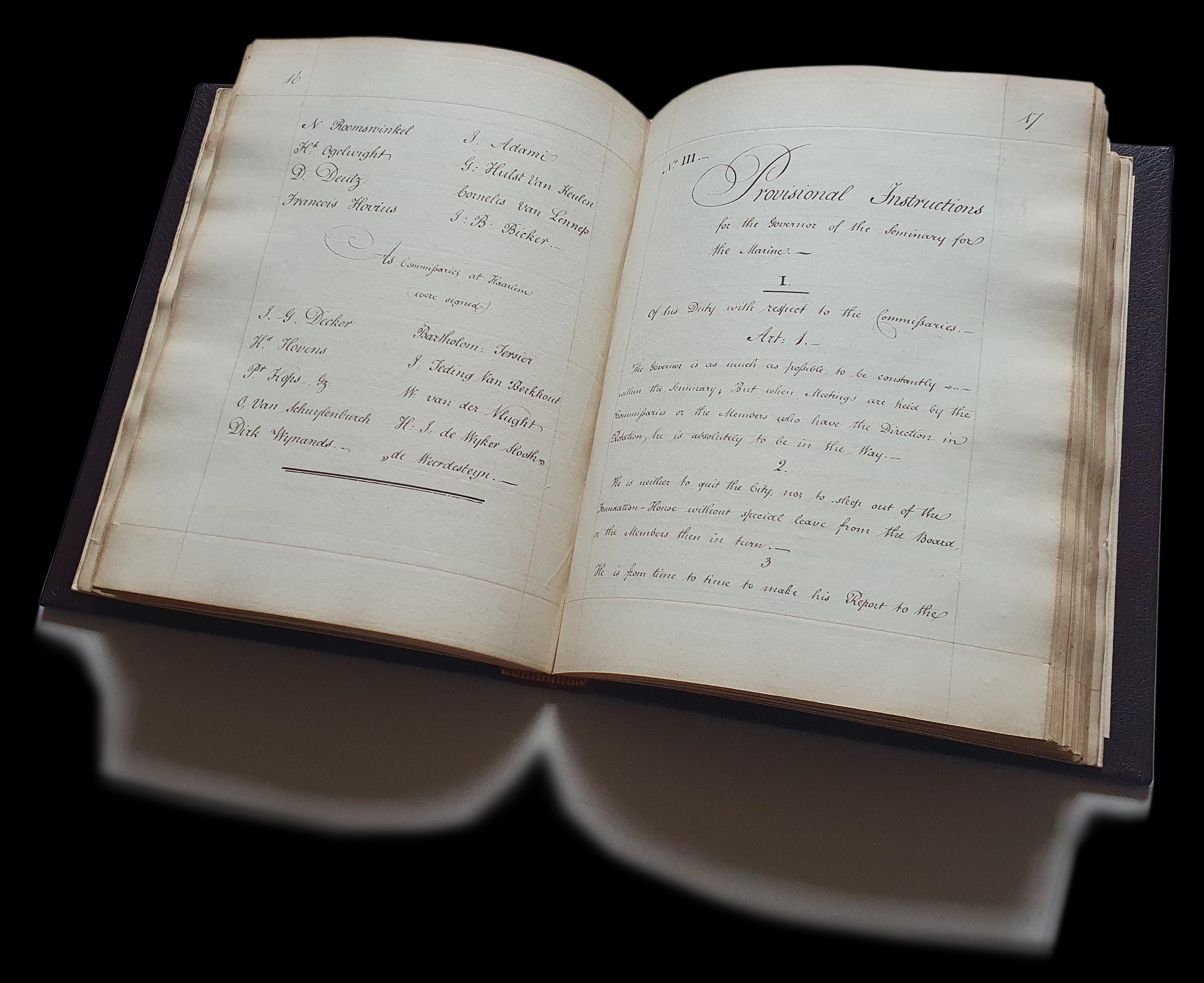 [Circa 1690]. Folio (323 mm x 208). Page dimensions: 293 mm x 193 mm. Text to 5 leaves, plus 1 blank. Watermark: Horn with letters AJ beneath. Similar to Haewood 2686-90 (which he dates, 1680-93) but none of these have AJ beneath. According to Haewood, AJ is probably Abraham Janssen. See Haewood: 409, 453, 2718, which he dates 1680-90. The binding is a 20th-century remboitage. It is bound in early 18th-century blind-panelled calf, with gilt-blocked royal arms of King George I on each side. It has been recently rebacked, with a new spine label and endpapers added. The paper was originally folded and a near contemporary paper spine titled in manuscript. It is mostly hidden in the fold but appears to read “A Character his Mai of”.