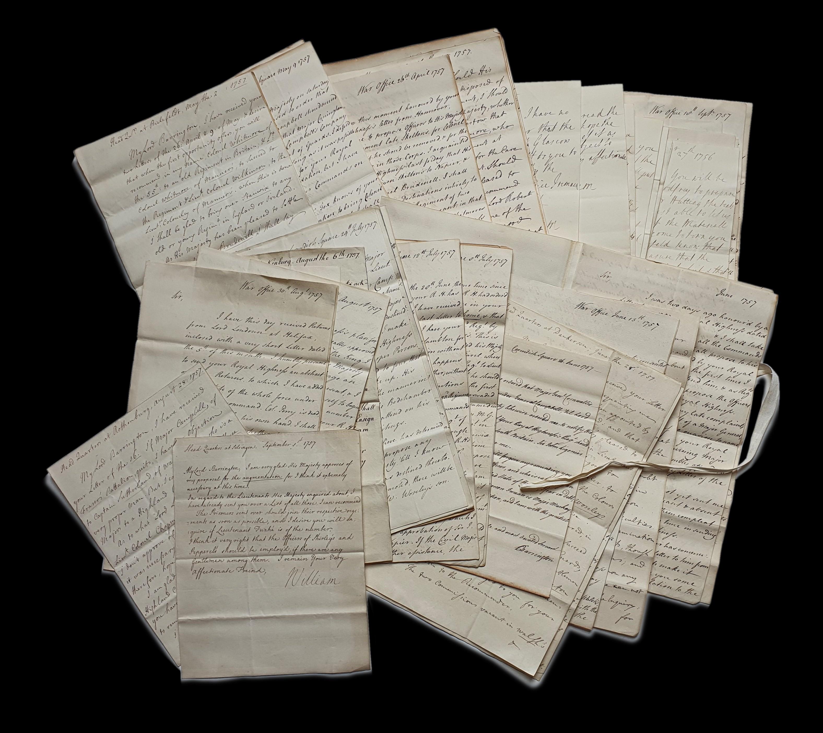 Large group of letters and documents including correspondence and battle plans. 1770-1778.