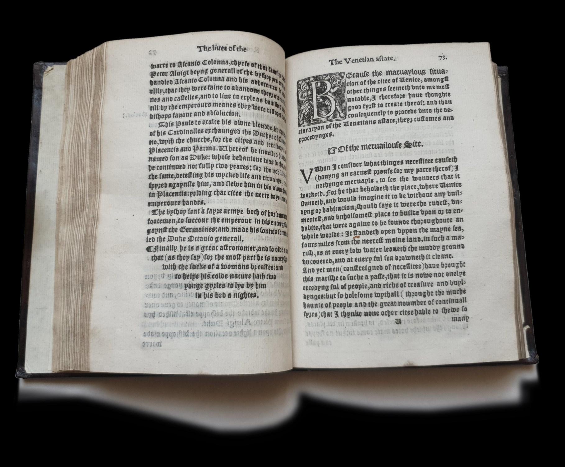 The variations between the two renditions are, as mentioned above, many but often slight, and mostly concern synonyms (“tempests” / “storms” in an example below), and syntax or punctuation. For example, the “Advertisement” to the reader in the printed version begins: “I Have some Considerations to represent unto thee concerning this Work, whereupon I beseech thee to cast thy eyes. The first is in relation to the Matter, which is composed of Reasonings and Examples.” Our scribe has arrived at something very similar: “I have some considerations, to represent unto thee, concerning this worke, uppon wch, I shall desire thee, to cast thy eyes, the first is, for the matter, wch is composed of Ratiocination, and of examples”. Later, “The seventh Discourse”, entitled “Of the disgrace of the Duke of Alva”, the Head translation begins: “Since we are upon the subject of Disgraces which happen at Court, and tempests which are there raised; Let us add the Duke of Alva’s to the former examples”; our scribe’s version (headed “Lib: 1. disc: 7: The disgrace of the Duke of Alva”) begins: “Since wee are upon ye subiect of y disgraces w arrive in Co , and y there arise, lett us add to y 2 preceading examples y of y