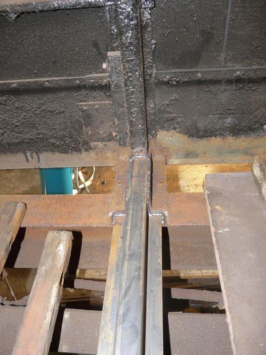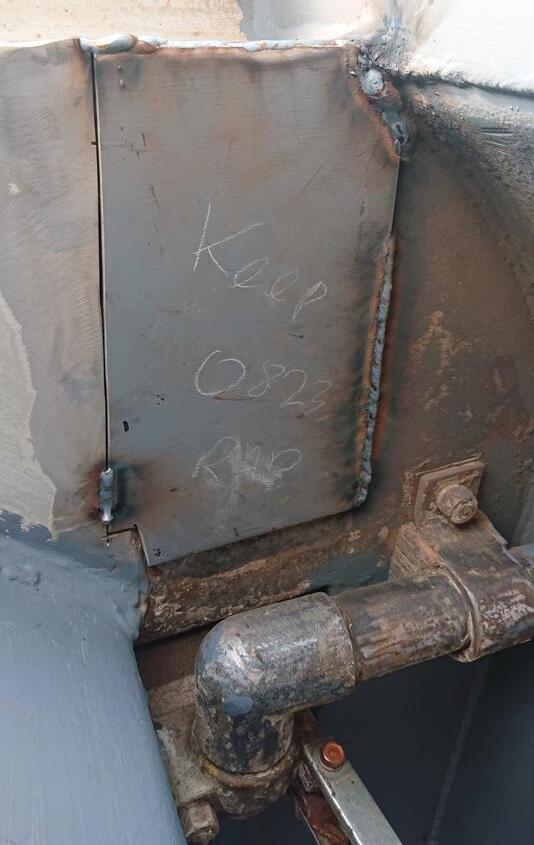 removed, access was afforded to the rad fan tunnel. A small leak was known to be in need of attention in the upper header tank, close to the left hand side grill. When examined further, the small leak turned out to be a patch of corrosion such that a section of steel some 10” x 6” was cut out to find a good edge to which new steel was welded in place.