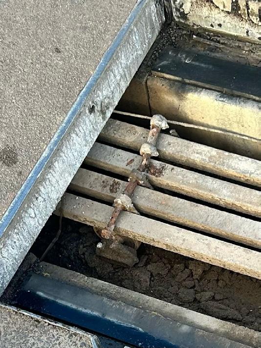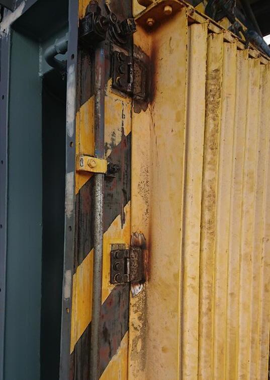 Both the radiator doors (having the vertical adjustable fins) were carefully lowered off the loco as it had been clear for some time the right-hand door had received a repair to the hinges that was less than perfect, leaving the door frame sagging off-square and out of alignment with the left-hand door. A pair of spare doors had been left stored outside for some time and it was to these that attention was turned to assess if those hinges were in a better condition. The replacement hinges were cut off complete and found to be in good condition, if only a bit seized, but sound and re-usable. The three damaged hinges on Charlie’s door were also cut off and the door prepared for the three ‘new’ hinges. The hinges were bolted to the loco and the doors offered back up. With supports to ensure correct alignment, the door was welded to the hinges before being lowered back to the floor. Following the repairs, some considerable time was spent cleaning, sanding and painting both doors, and the pivoting fins. These have been left in undercoat and stored awaiting painting of the loco’s front wasp-stripes.