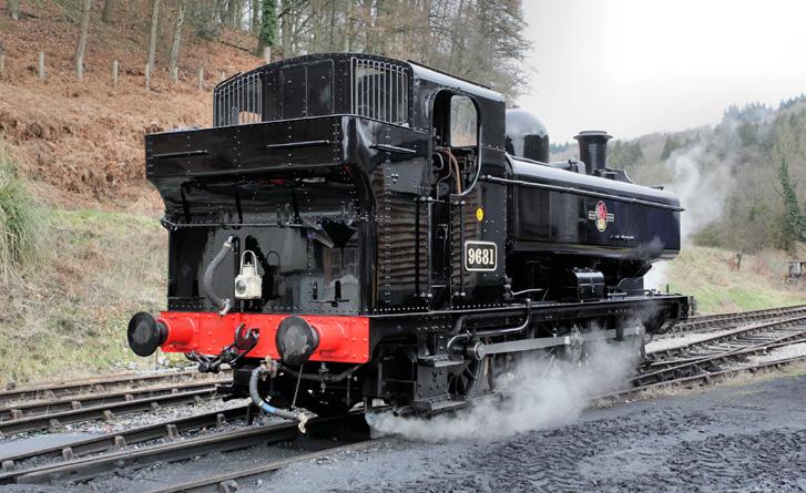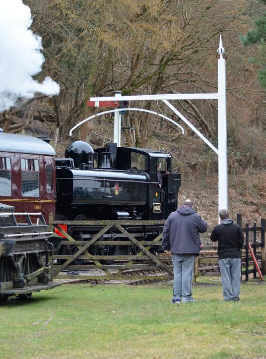 ing a Down train near Whitecroft on the Members’ Day on 11th March 2023. Below: Looking resplendent, with a highly-polished finish, 9681 stands at the coaling stage at Norchard on 11th March 2023. (A. Buckley)