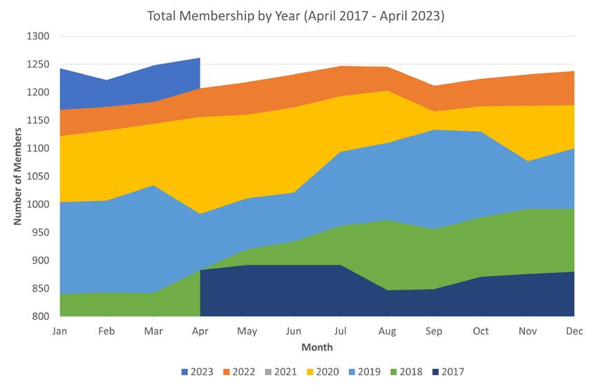 Having a look back, from the start of my records in October 2011 through to April 2017, the membership numbers were quite stagnant, with the total number of members hovering between the 830 and 930 marks. These were rather saw-tooth fluctuations, with numbers rising and then dropping off quickly based upon the renewal periods of June and December. For reference, members not who have not renewed are archived after 90 days beyond their expiry date (although this was extended during COVID for reasons that were all too familiar).