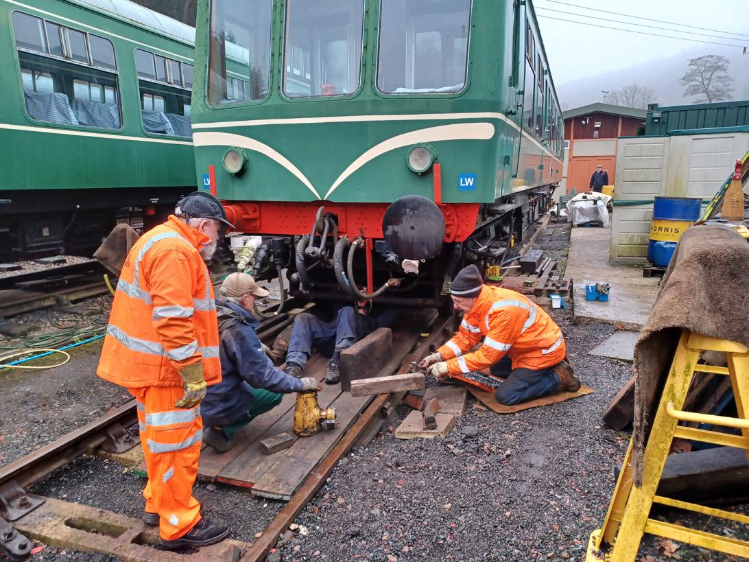 The DMU team has been busy with restoration and servicing work to keep the fleet in working order for the 2023 season. This has included repairs to a brake cylinder on M51566 which refused to create high side vacuum in the normal manner. Following various tests a problem with the ball valve was suspected. While class 108 trailer cars have brake cylinders mounted separately from the bogies in a similar arrangement to mark 1 coaches the power cars have them hidden away within the bogies, presumably