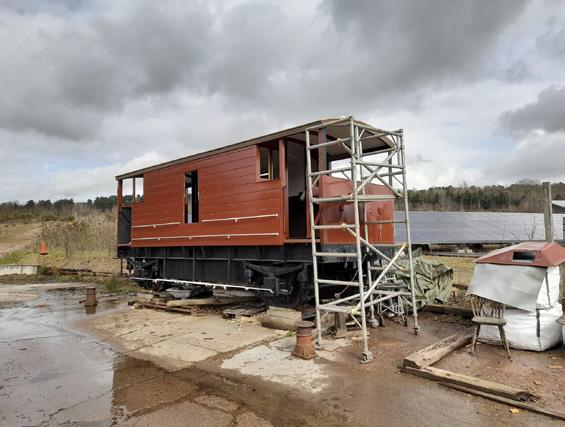 Work is progressing steadily on the complete restoration of the Society’s LMS Brake Van, by a contractor based in Staffordshire. This work has been extensive and has involved stripping the van back to a bare metal framework, replacement of corroded metalwork, replacement of the vast majority of the woodwork, as well as the repainting which can be see in this photograph.
