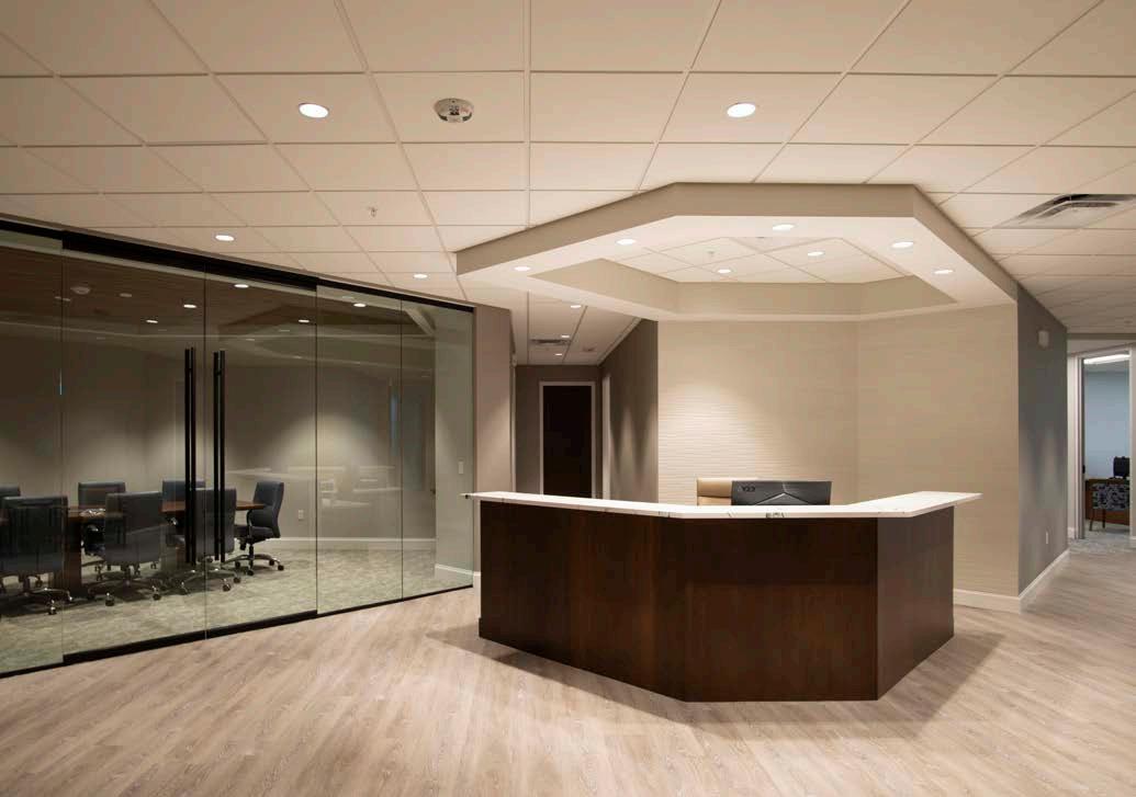 This impressive tenant improvement project undertaken for Welsh Commercial Real Estate involved an extensive overhaul of the existing space, complete with the removal of walls and the installation of new firewalls and partitions. The upgraded space also boasts new lighting fixtures and diffusers, updated ACT, revised sprinkler systems, a state-of-the-art fire alarm, and sleek new doors. With fresh paint and elegant wallpaper adorning the walls and stylish new flooring underfoot, the final result is a breathtaking example of sophisticated design that truly sets a new standard for commercial spaces.