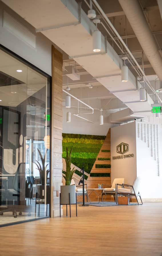 The build-out of DeAngelis Diamond’s Orlando Office included the complete demolition of the existing office space on the 16th floor of the Regions building in downtown Orlando. The 3,400 sq.ft. interior build-out includes private offices, open office areas, conference rooms and a café overlooking the downtown Orlando skyline. The build-out includes open ceilings throughout, glass walls at all offices and conference rooms, decorative wood and moss walls, and enhanced finishes throughout the space. The renovation occurred while the adjacent tenants remained fully operational.