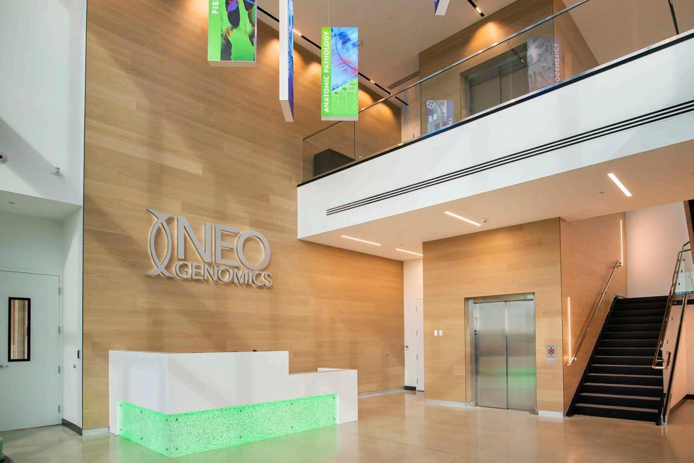 NeoGenomics is a premier cancer diagnostic, pharma services, and information services company serving oncologists, pathologists, pharmaceutical companies, and academic centers in their pursuit of providing better futures for people living with cancer. DeAngelis Diamond was hired to build the NeoGenomics Headquarters. The project consisted of constructing three separate buildings including their 75,000 sq.ft. office building. The value of the office build out was over $9.4 million dollars with state-of-the-art technology and high-end finishes. Some of the components of the office building include multiple conference and meeting spaces, training rooms, media center, kitchen & break room, a grand staircase, and spacious reception area.