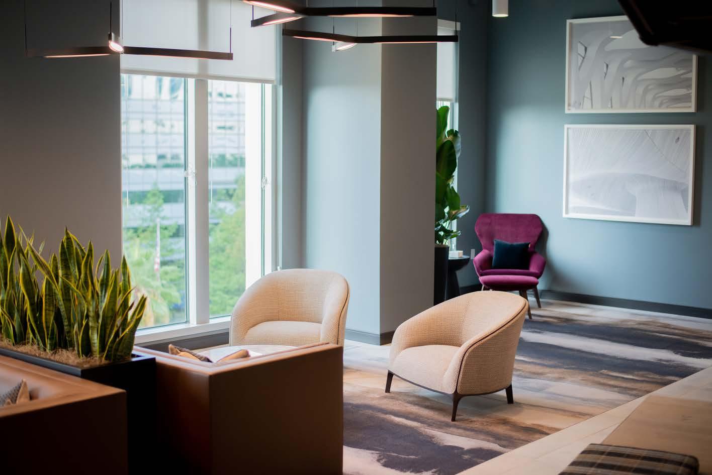 Prepare to be impressed by the stunning interior renovation of the 4th and 5th floors of the CNL Tower I in Downtown Orlando. The construction work is extensive, featuring a brandnew connected staircase that gracefully unites the two floors, and a gorgeous glazing system that bathes private offices and conference rooms in natural light. Along with the new coffee bar, café, breakrooms, and workstations, you’ll find an inviting elevator lobby on the 4th floor that adds a touch of elegance to the space.