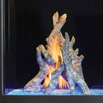 35 34 VERTICAL SEE-THRU CONFIGURATION WITH EXTERIOR WINDOW KIT: 36 X 58 INCHES; PLATINUM CRUSHED GLASS MEDIA AND BON-FYRE TM LOG SET THE DAVINCI MAESTRO ™ COLLECTION