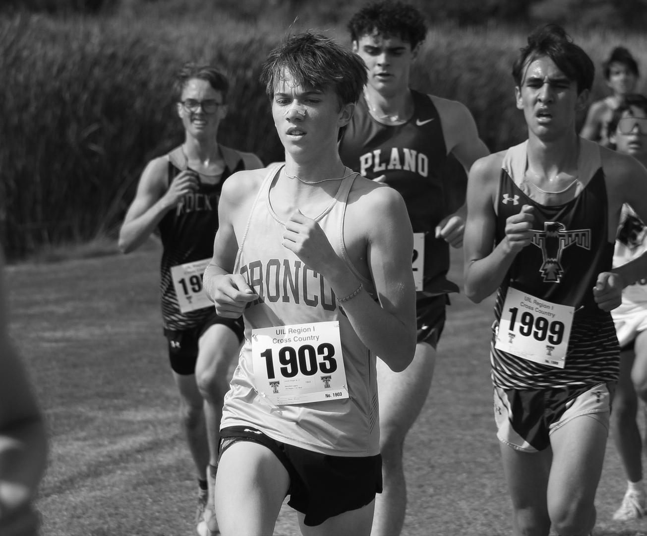 At the district meet Oct. 9, Joshua Odums, 12, powers through the final hill of the race. Varsity boys and won district champions, advancing them to Regionals.