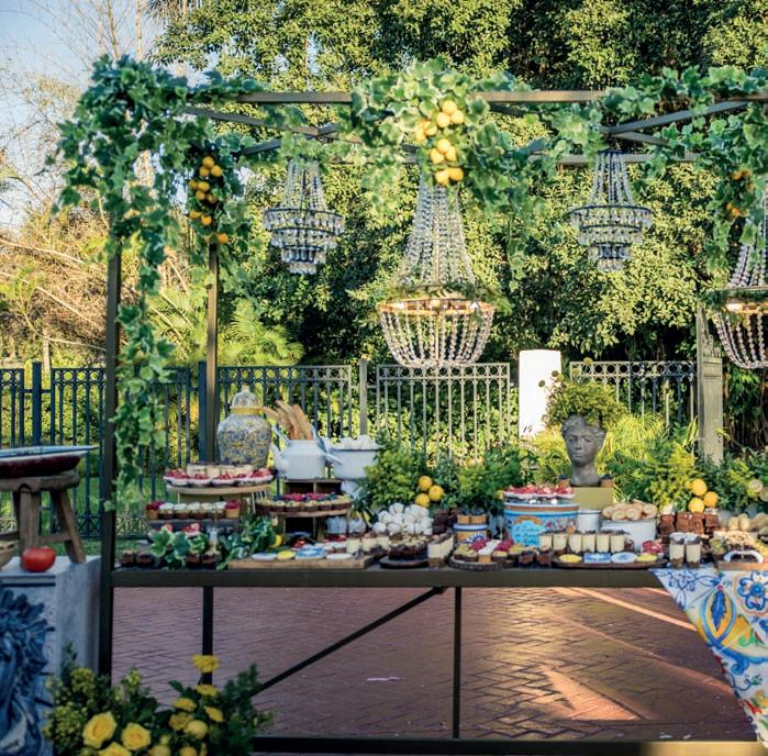 El gran salón al aire libre, evocaba una de esas terrazas de terracota y luces tenues, donde se dispuso la pista de baile y un “mercato” italiano, donde los invitados pudieron degustar estaciones de pasta, pizza, vinagretas, panes, charcutería, dulces, café y el infaltable gelato. La comida fue realizada por el chef Mauricio García, de Sobre la mesa, quien dispuso no solo tequeños, sino arancini de riso bianco trufado, acqua pazza, polpetines, pulpo y chuletas de cordero, entre otros platillos, además de la tradicional estación de arepas. Los exquisitos dulces fueron una creación de Keik Bakeshop, y la coctelería fue de Shaduu The Experience.