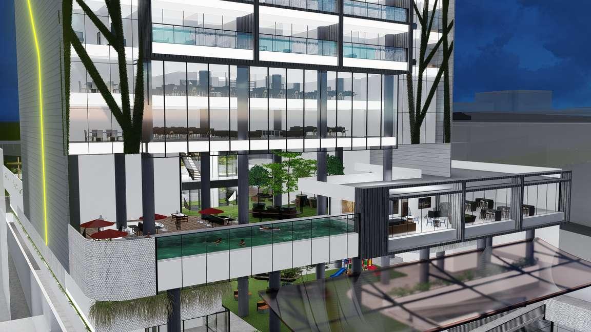 Entrada apartamentos Zona BQQ Área piscina