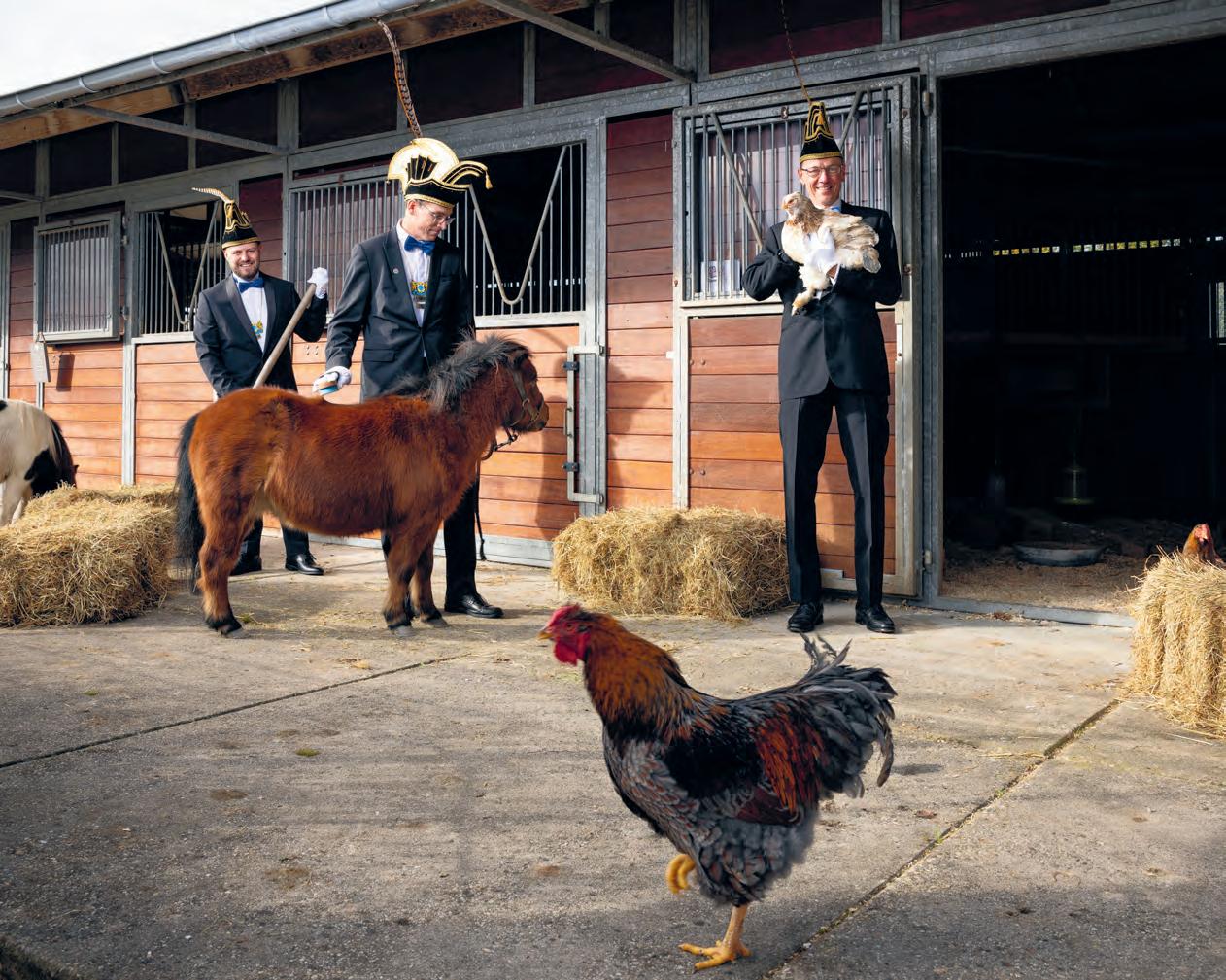 De ministers van: de boerenknecht (Mark), de stoeterij (Robbin) en pluimvee (Theo) zijn dan misschien niet van het type haantje de voorste, maar zijn er als de kippen bij als er wat te vieren valt!