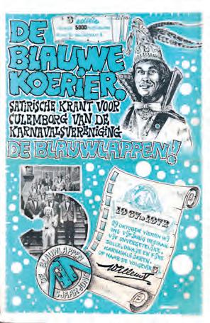 Dit jaar vieren we ook een bijzondere mijlpaal: de 55ste editie van De Blauwe Koerier! Een moment om trots op te zijn. Een paar vrienden van De Blauwlappen hebben nog alle edities bewaard, en het is altijd leuk om terug te bladeren en oude herinneringen op te halen. Ga terug in de tijd en herleef de vele hoogtepunten, thema's, feesten en spot (oud)bekenden. Blader verder in deze Blauwe Koerier voor het volledige programma en kom gerust een keer langs om de sfeer te proeven; Karnaval is voor ons allemaal!
