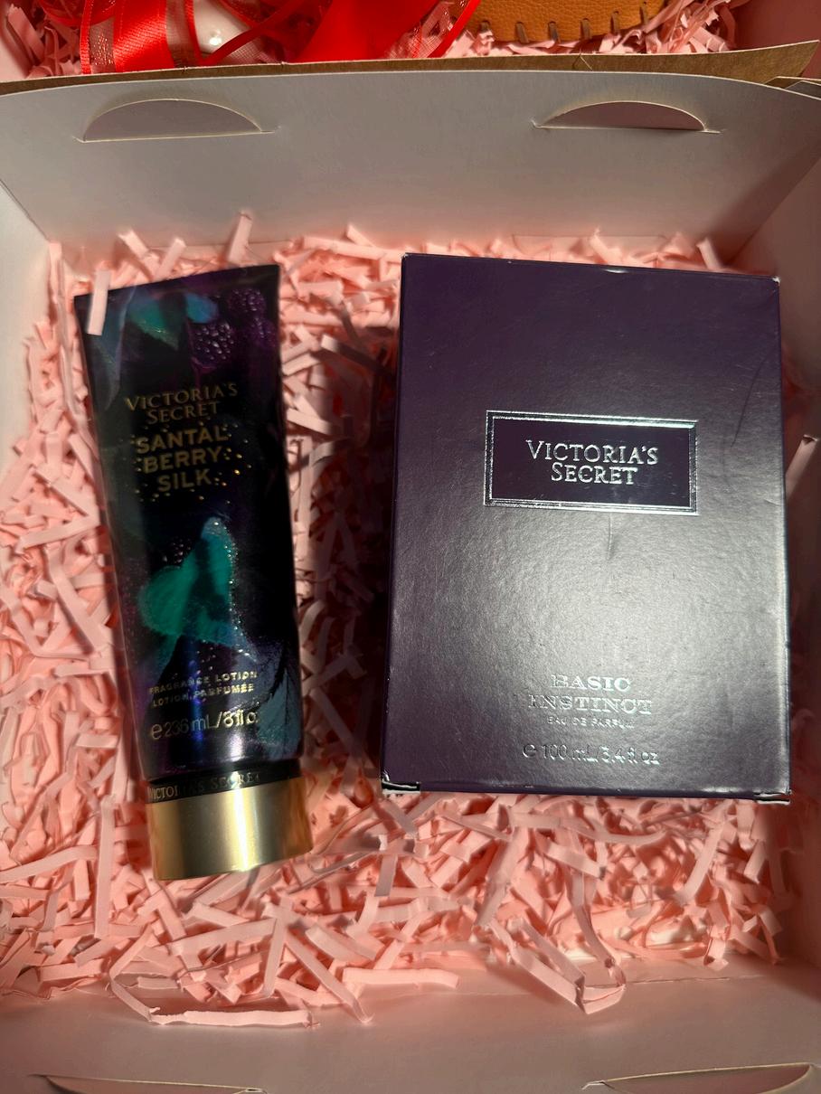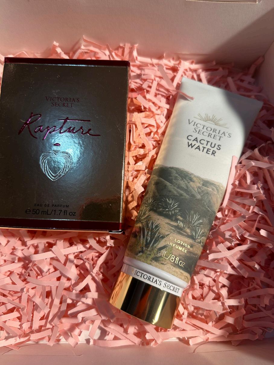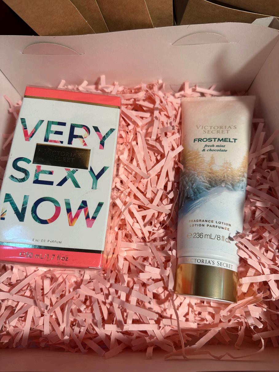 Consta de un perfume de 50ml (se puede cambiar por otro aroma de 50ml) y una crema a escoger entre todo el catalogo, todo marca Victoria secret, viene con una caja decorada con papel picado dos tarjetas del dia de la madre y un lazo.
