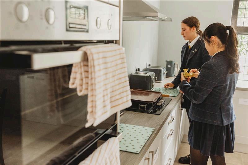 Each House has a kitchen for preparing snacks. No take-aways are permitted between Monday and Thursday nights, and all boarders are expected to take meals in Big School. House kitchens stock bread, butter, jam, tea, coffee, and fruit. Supper is provided following evening prep. Boarders are expected to clean up after supper and any snacks, and House rotas are provided to ensure this happens fairly. No food should be cooked or consumed in bedrooms.