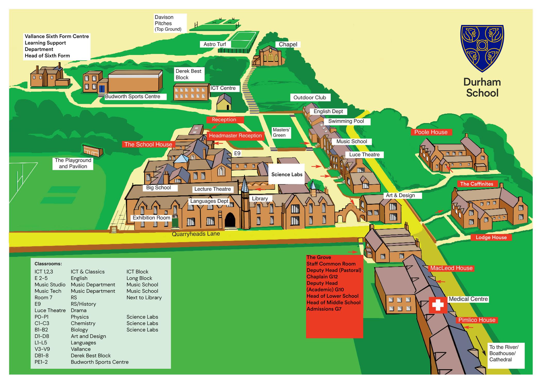 Girls day and boarding house. Pimlico; founded in 1985 when girls were first admitted to Durham School, enjoys unique and breathtaking views of Durham Cathedral and the riverbanks, and is a cosy, homely haven for boarders and day pupils.