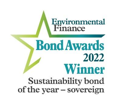 The transaction was recognized in Environmental Finance’s 2022 Bond Awards, winning the sovereign sustainability bond of the year and the award for sustainability bond structure innovation.