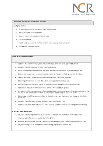 Any legal action (Magistrate or High Court) or legal fees other than the debt review application