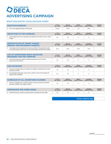JUDGE __________ 44 | COLLEGIATE DECA GUIDE 2020-21