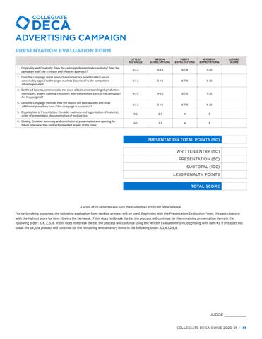 JUDGE __________ COLLEGIATE DECA GUIDE 2020-21 | 45