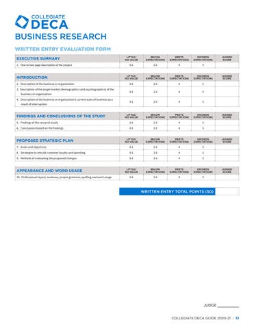JUDGE __________ COLLEGIATE DECA GUIDE 2020-21 | 51