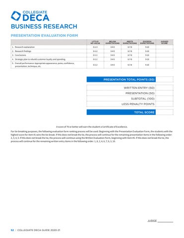 JUDGE __________ 52 | COLLEGIATE DECA GUIDE 2020-21