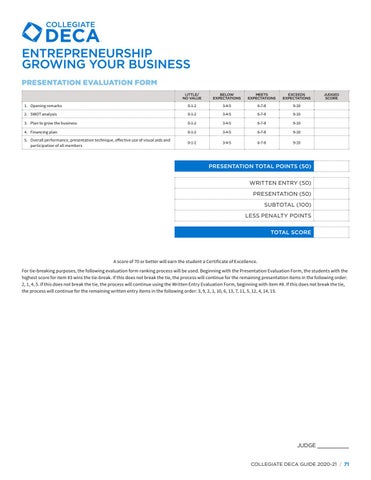 JUDGE __________ COLLEGIATE DECA GUIDE 2020-21 | 71