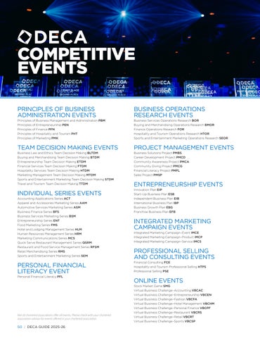 DECA’s Comprehensive Learning Program provides opportunities for recognizing members for their mastery of content knowledge and significant contributions to their learning. Whether the recognition is for selfimprovement or a competitive achievement, DECA encourages members to develop knowledge and skills to become emerging leaders.
