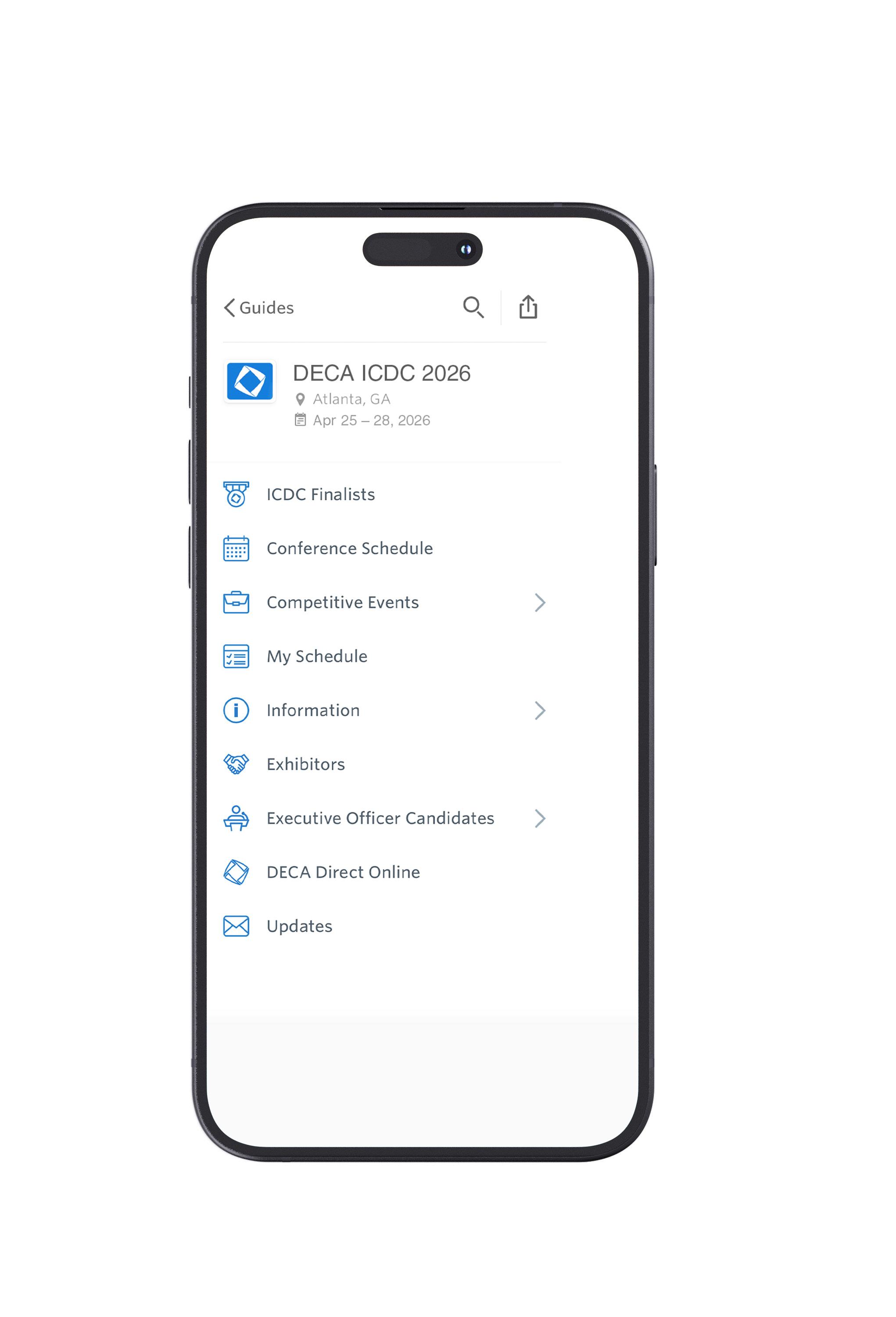 deca.org/icdc for updates. Events will be held in the Georgia World Congress Center, Building B, unless otherwise noted.