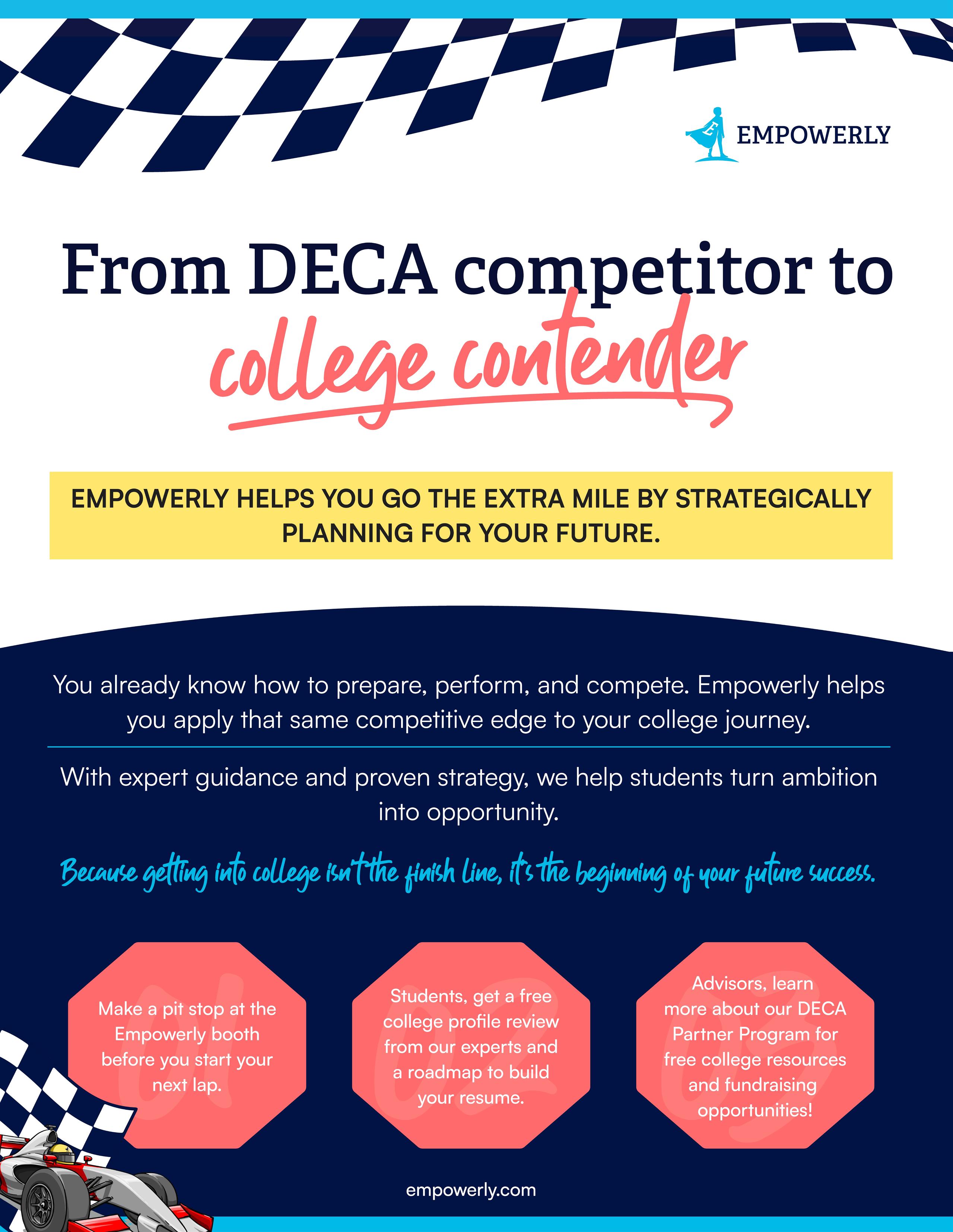 While you’re in Atlanta, you have the opportunity to compete against the very best for the coveted DECA Glass, meet members from around the world and elevate your leadership skills through the Emerging Leader Series. ICDC also provides an opportunity to build connections for your future. Be sure to visit the college and career exhibits to network with industry professionals, college representatives and potential future employers.