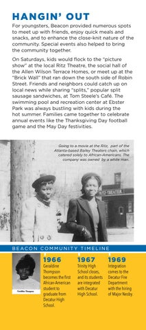 Going to a movie at the Ritz, part of the Atlanta-based Bailey Theaters chain, which catered solely to African-Americans. The company was owned by a white man.