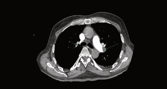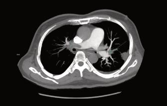 COVID-19sehaasociadoaunaumentodefenó‐menostromboembólicos.Esteaumentodela pro-coagulabilidadvascularpuededeberseaun efectodirectodelvirussobreelendotelio,produ‐ciendounainflamaciónendotelialdifusa.La Angiotomografíatorácicaconcortesfinosesel métodoparavalorarsimultáneamenteelinters‐ticiopulmonar,asícomotambiénelprobable compromisovascularquesedebenidentificar enlosestadiosmástempranosposibles(Fig.2)