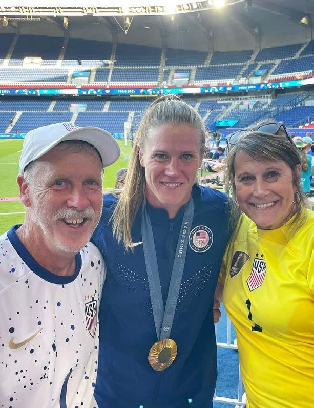 Keeper Alyssa Naeher with her parents John and Donna right after the U.S. women won Olympic gold on the second Saturday in August — in Parc des Princes stadium in Paris — rather than restrict her breathing, it’s safe to say that the gold medal around her neck is a definite breath of fresh air