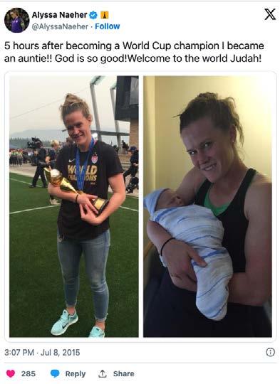 After last year’s World Cup, when the U.S. women were knocked out earlier than ever before, Alyssa’s dad told News 12 Connecticut: “I’m mostly proud of who she is, and I tell her this all the time. She’s been great at not letting soccer define her — she plays hard, she’s trained hard for years, but she always has worked hard at keeping it in perspective.”