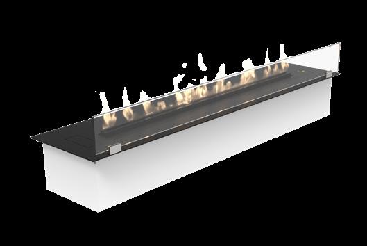 Til slutt setter du inn den valgte brenneren. I tillegg til den stilige designløsningen kommer veggen med skjulte hjul. Dette gjør det enkelt å endre plassering av veggen, som både kan fungere som romdeler og plasseres opp mot en eksisterende vegg.