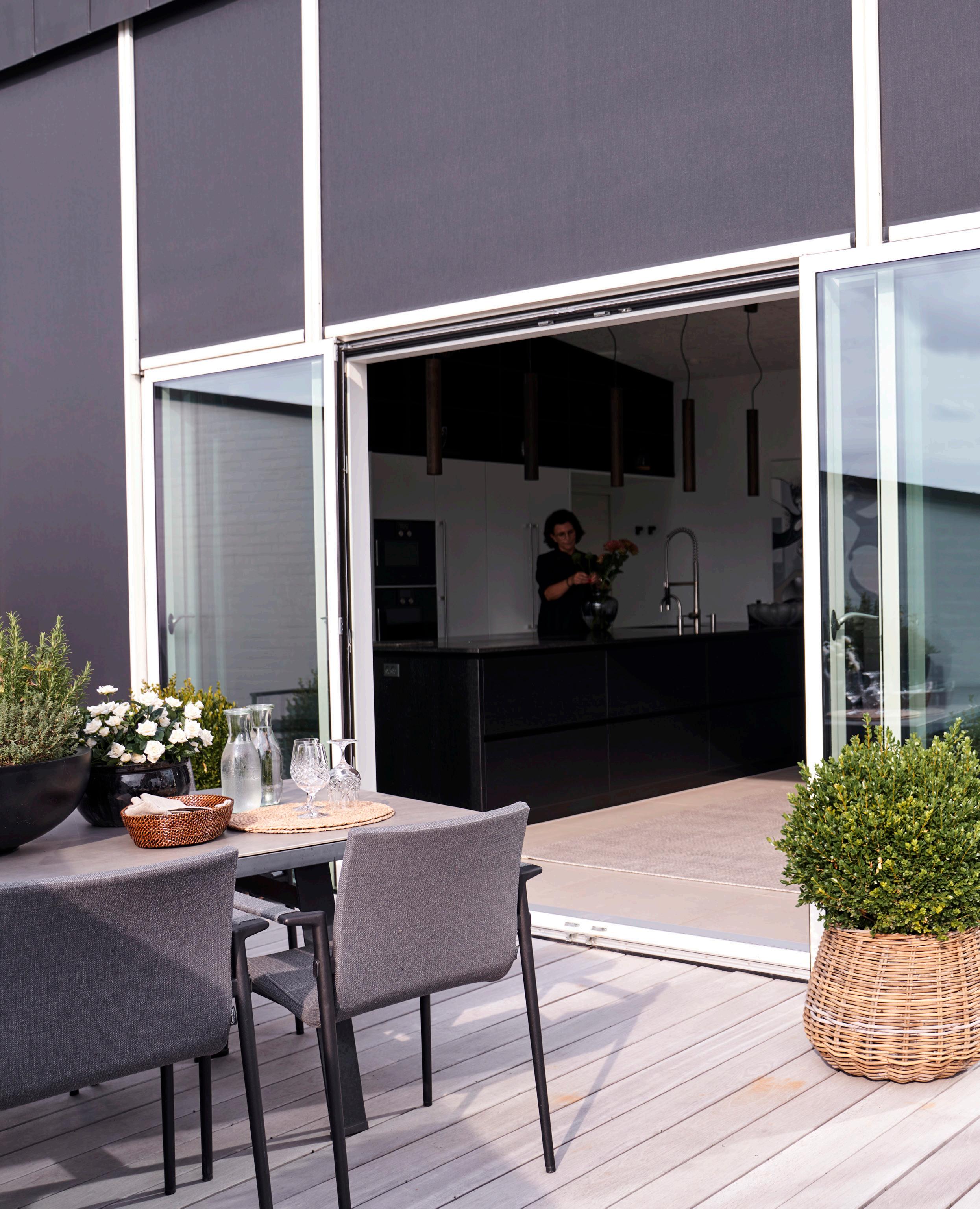 ”Den første sommer vi boede i huset, brugte vi den eksisterende markise meget mere, end jeg havde forventet. Så vi var slet ikke i tvivl om, at vi skulle have en markise med motor til forsiden af huset også.” – Katja Jackson Nylander, @katjajacksonnylander