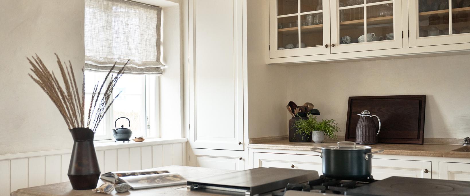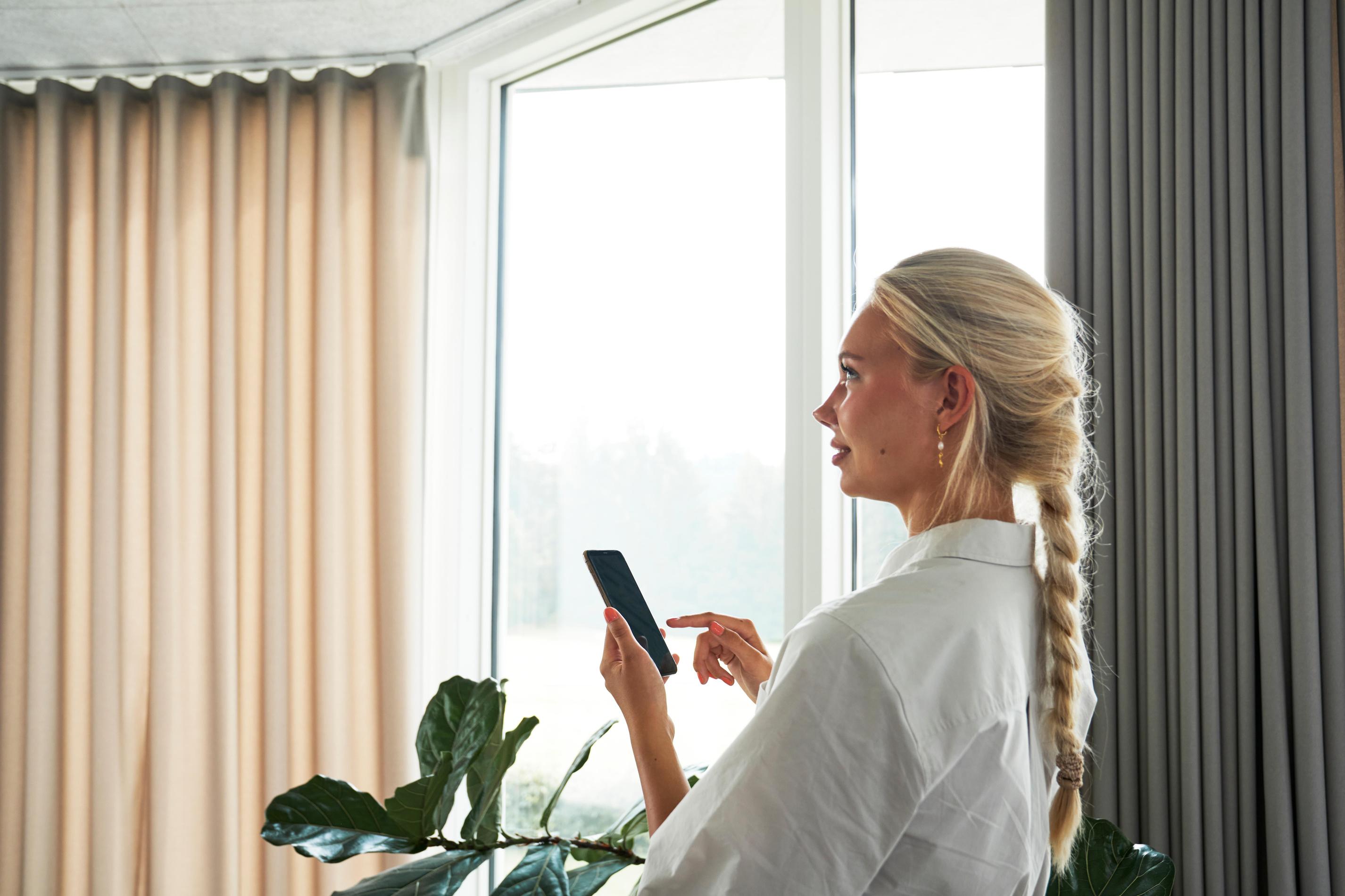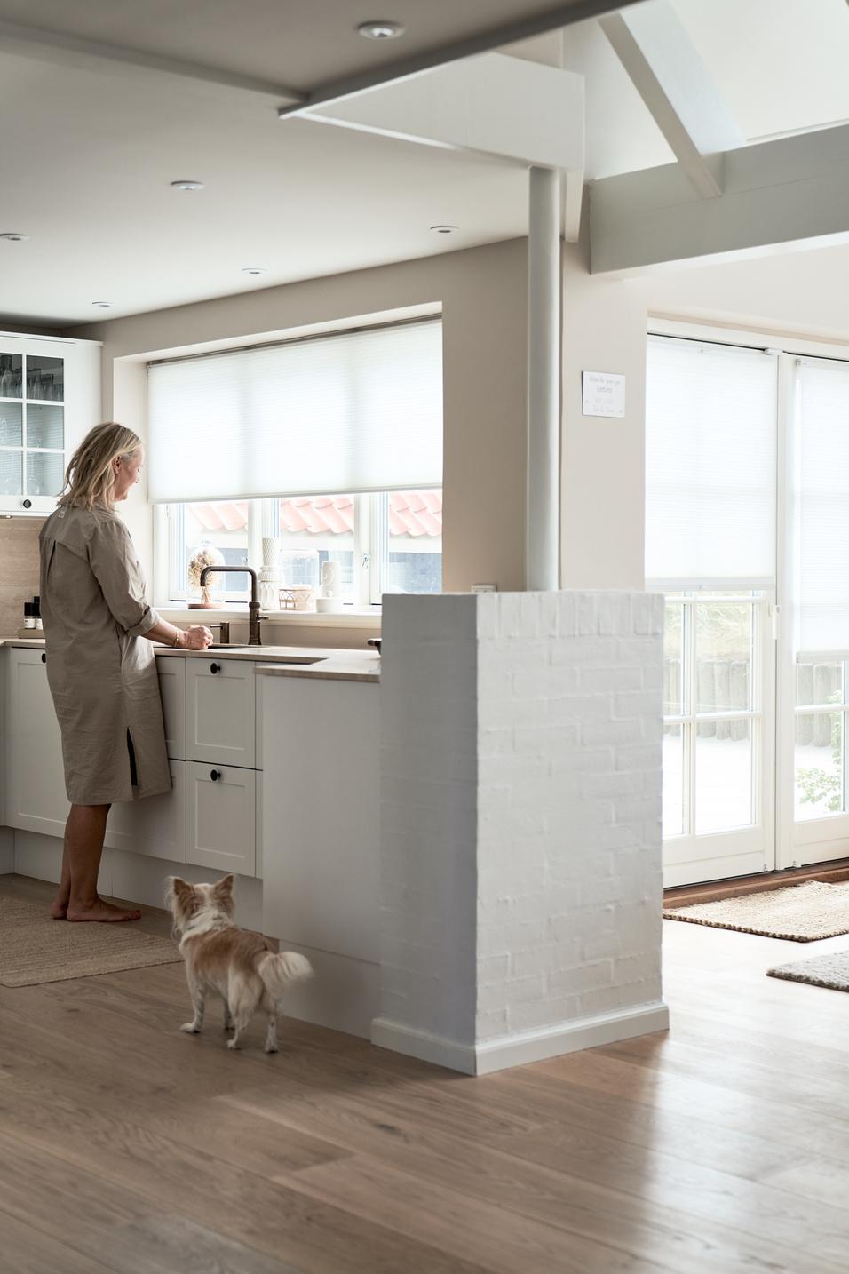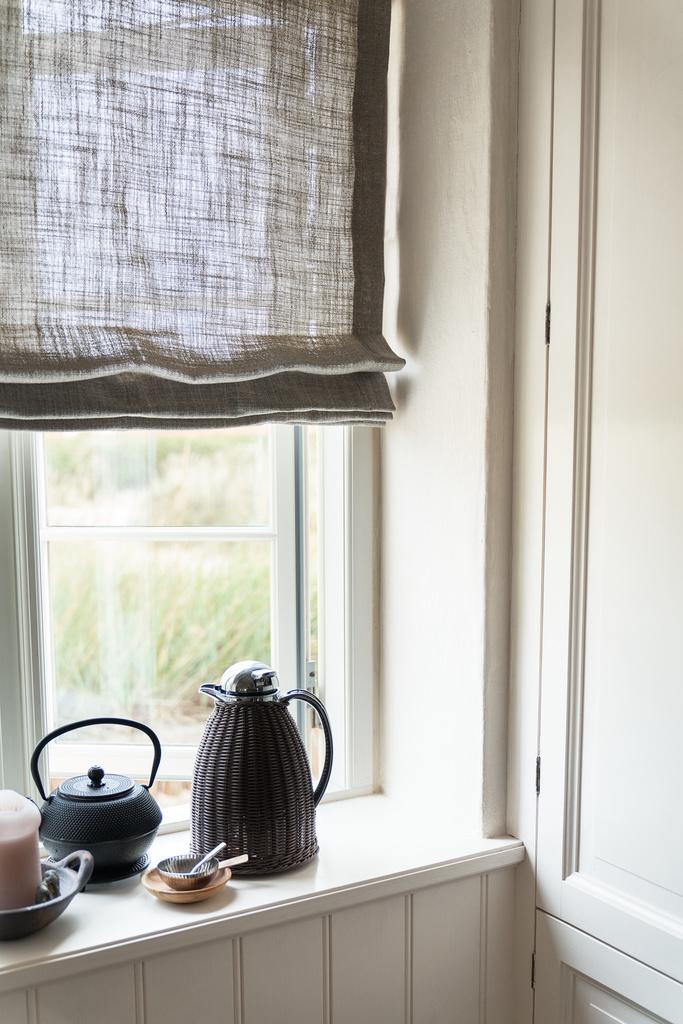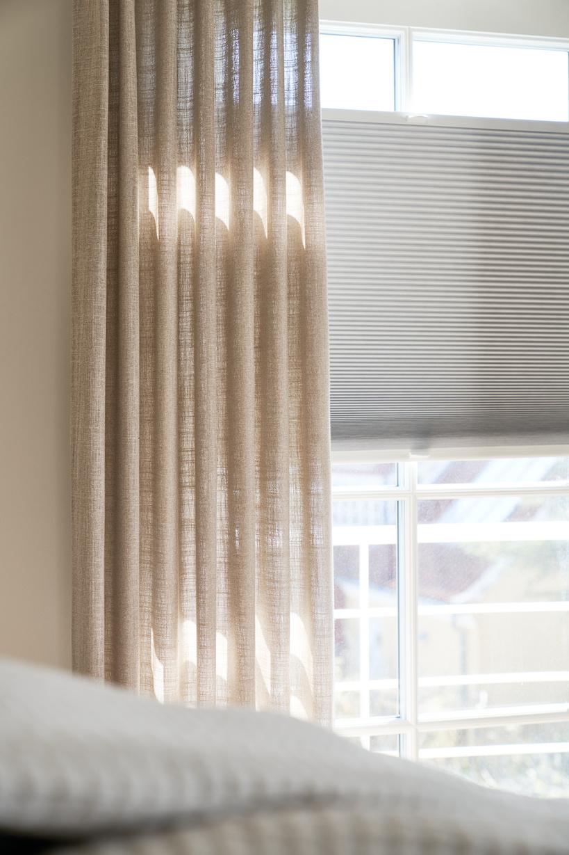 Vælg eksempelvis et stofgardin med struktur og kombinér det med et plisségardin for en naturlig og varm atmosfære