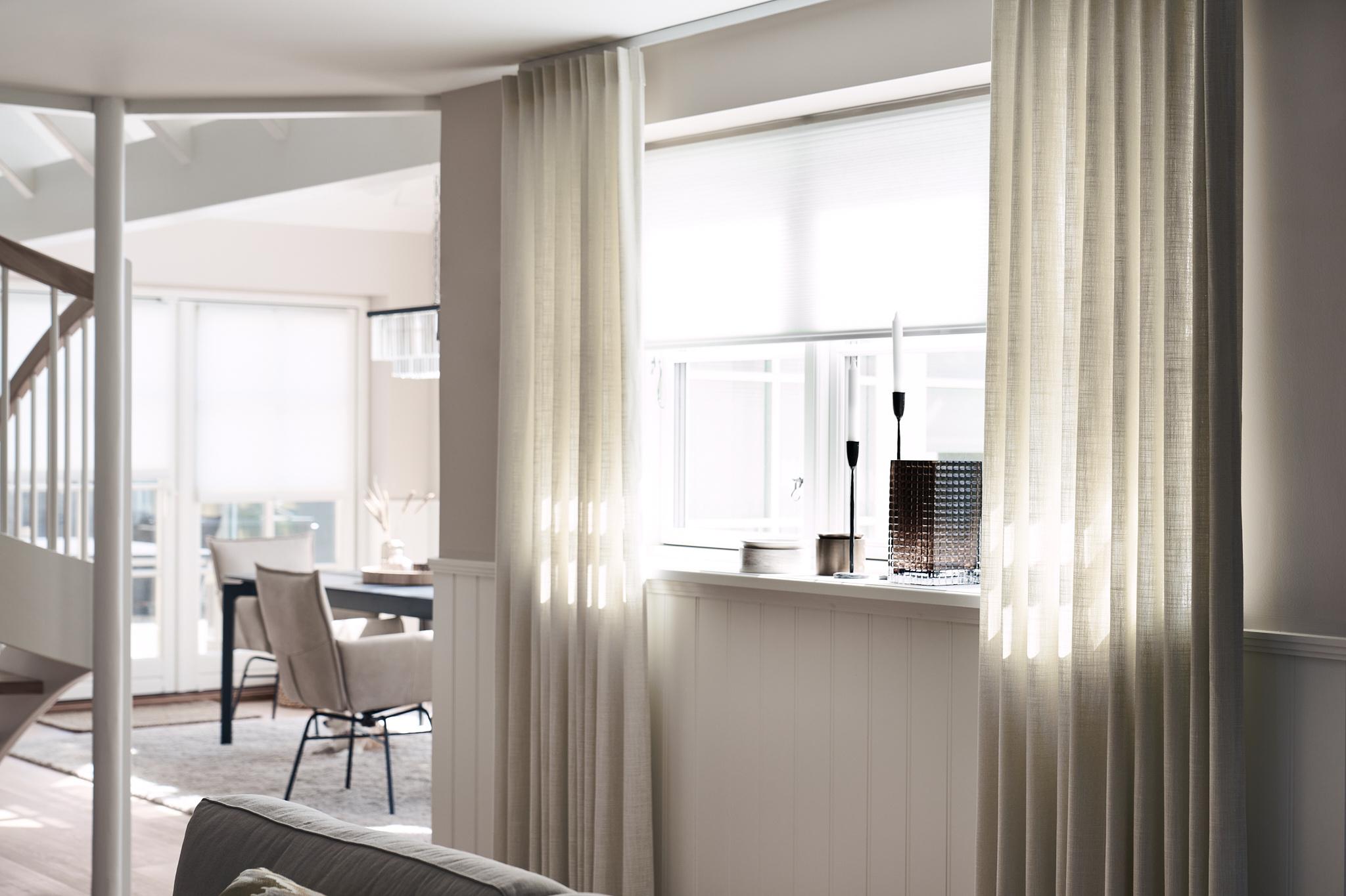 Stuen er et rum, der skal rumme mange funktioner. Stuen danner ramme for både festlige arrangementer for familie og venner og afslapning med en bog eller foran TV’et Der skal være plads til det hele, og gardinerne er både det praktiske element, der skal forhindre generende sollys og nysgerrige blikke, men også et indretningselement, der sætter stilen og stemningen i rummet