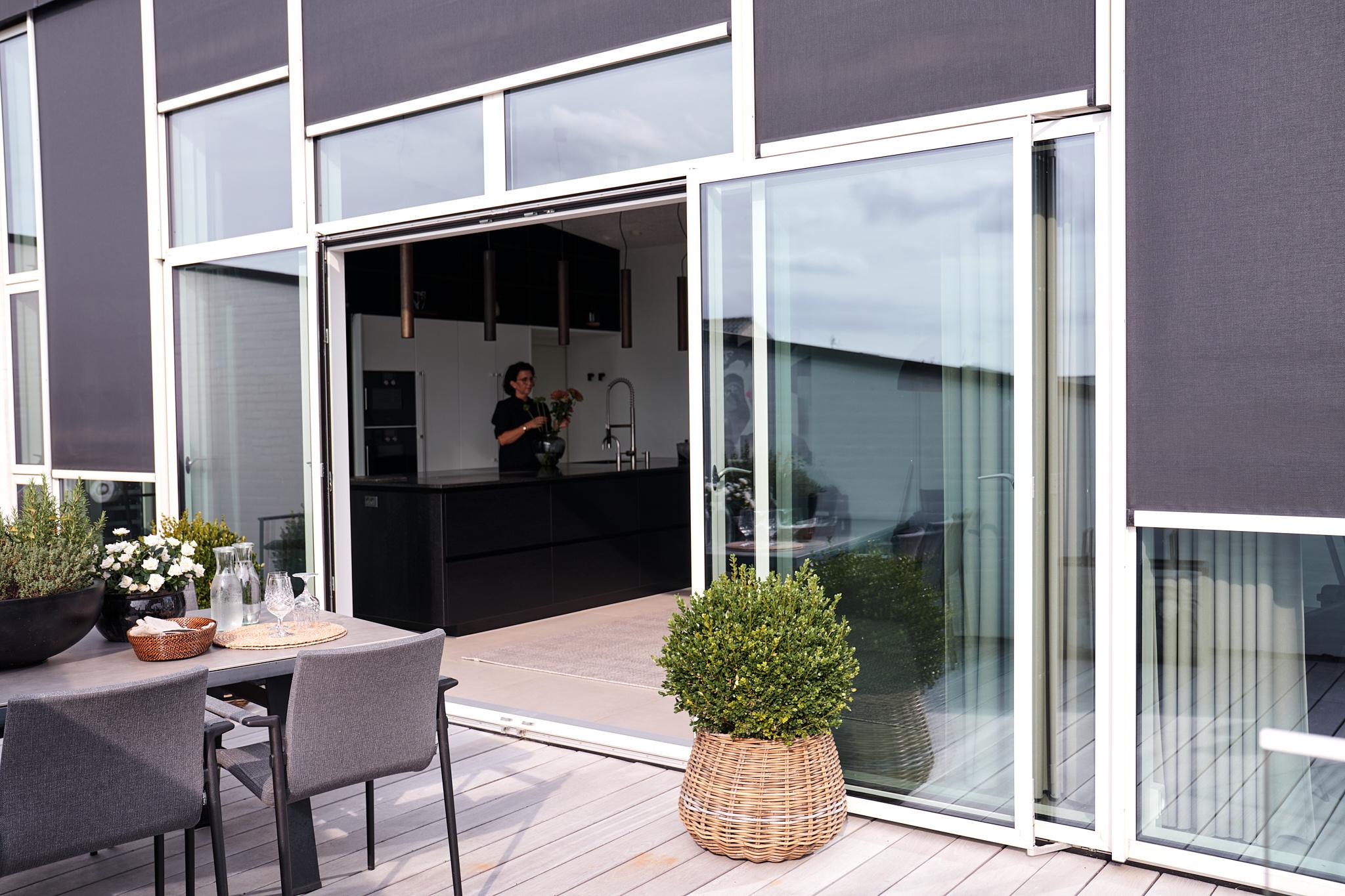 Den udvendige solafskærmning er desuden en effektiv hjælp til at regulere temperaturen i huset. Markisen forhindrer nemlig varme stråler i at trænge ind på den indvendige side af glasset og varme luften i rummet op. En god udvendig solafskærmning mindsker derfor behovet for nedkøling – godt for både energiforbruget og indeklimaet