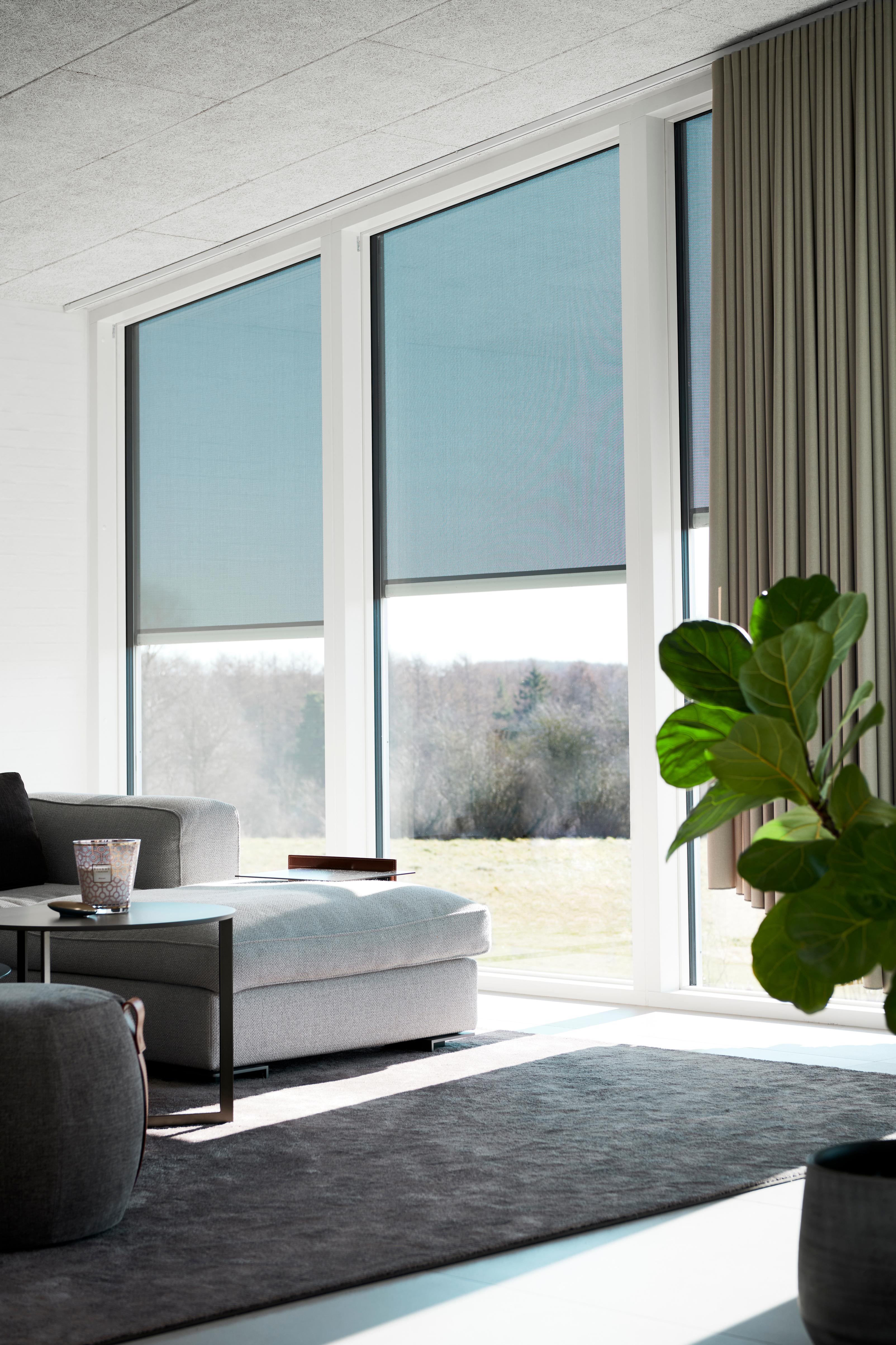 Med udvendige screens får du en effektiv, diskret og holdbar form for solafskærmning og en perfekt løsning, hvis du er udfordret af et varmt indemiljø Den transparente dug sidder solidt integreret på vinduet som et udvendigt rullegardin Det lader dig beholde lyset og udsigten, men filtrerer størstedelen af solens strålevarme fra