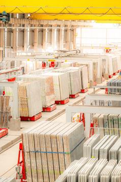 Após inspecionadas pela área de Qualidade, as chapas são dispostas em depósito especí co para distribuição. Lá os pro ssionais são treinados nas melhores práticas de movimentação e carregamento de rochas naturais, seguindo rigorosamente as normativas da Agência Nacional de Transporte Terrestre, a NR11 e as regras especí cas para o transporte de chapas.