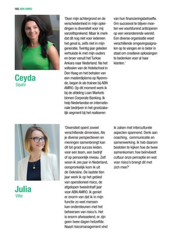 ‘Door mijn achtergrond en de verscheidenheid in mijn opleidingen is diversiteit voor mij vanzelfsprekend. Maar ik merk dat dit nog niet voor iedereen het geval is, zelfs niet in mijn generatie. Twintig jaar geleden verhuisde ik met mijn ouders en broer vanuit het Turkse Ankara naar Nederland. Na het voltooien van de Hotelschool in Den Haag en het behalen van een masterdiploma op Nyenrode, begon ik als trainee bij ABN AMRO. Op dit moment werk ik bij de afdeling Loan Markets binnen Corporate Banking. Ik help Nederlandse en internationale bedrijven in het grootzakelijk segment bij het realiseren