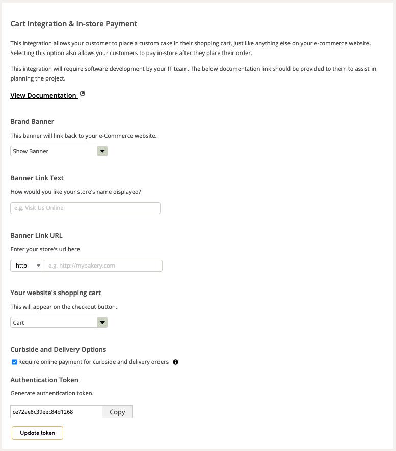 Cart integration allows your customers to shop on your eCommerce website for groceries, link over to your CelebrationIQ site to order a cake and purchase the entire order back on your eCommerce website. This inetegration requires developer programming. Full instructions are availble online at: www.CelebrationIQ.com/cart-integration