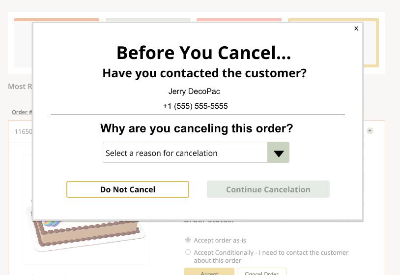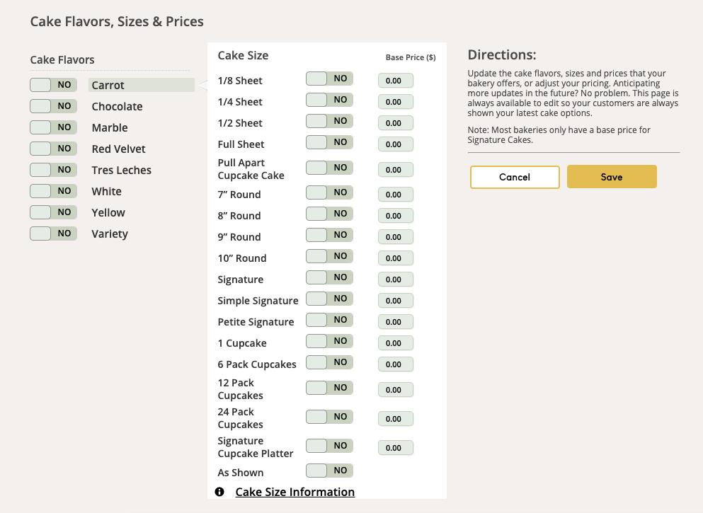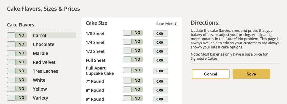 Disabling this feature still gives customers the ability to search and view your cake offerings through the custom URL, but does not allow online ordering. Instead, your customers will be prompted to call your bakery to order.