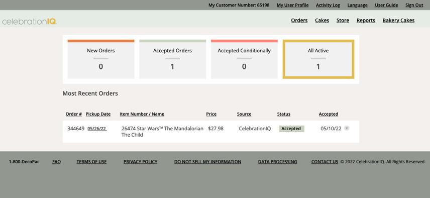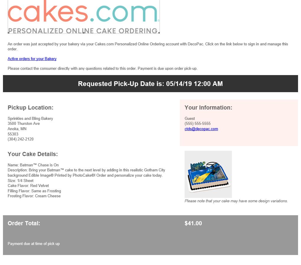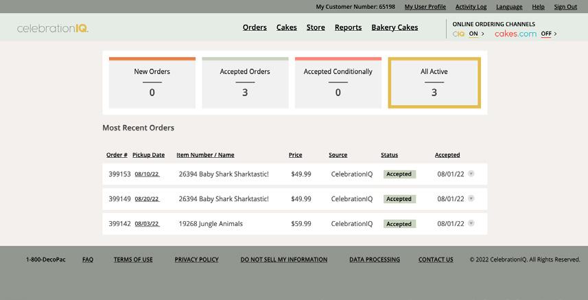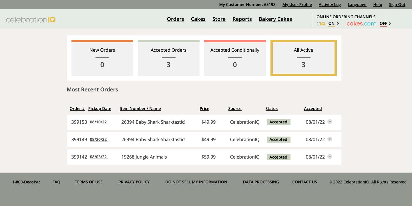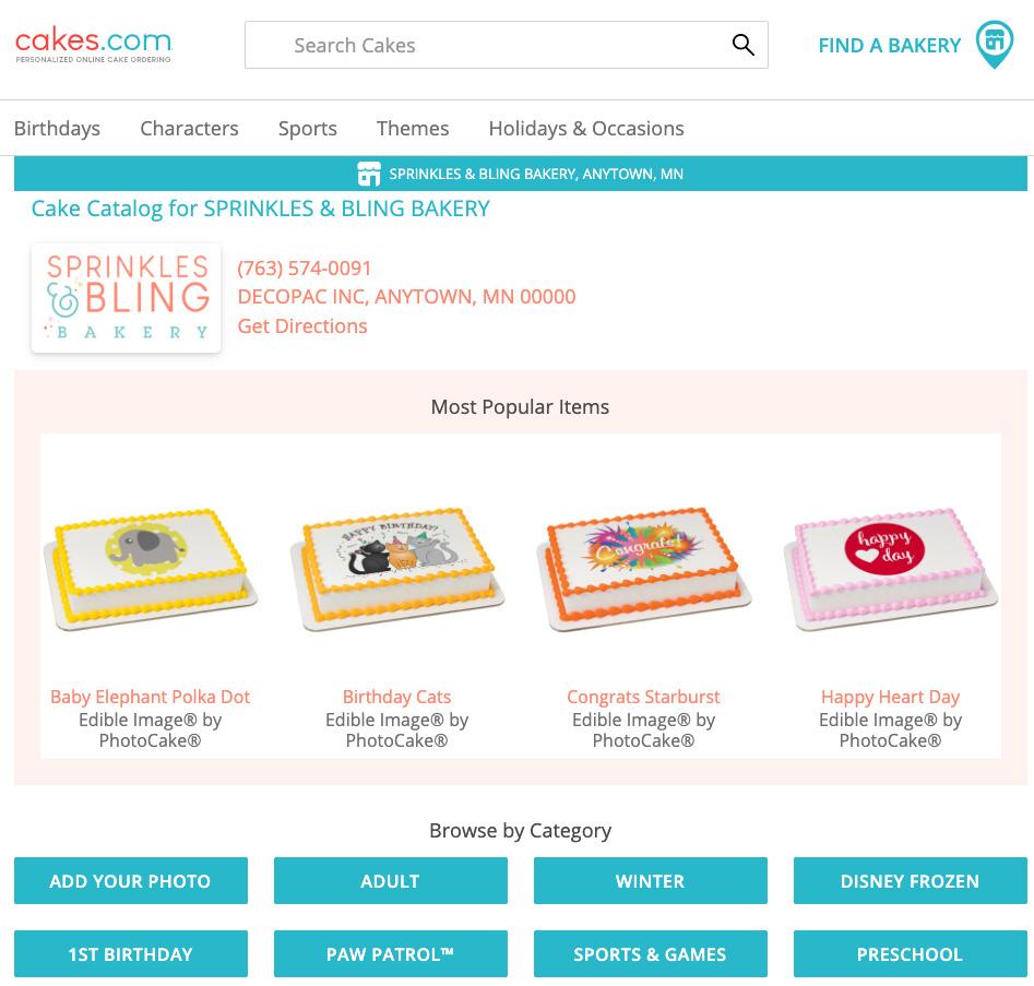 E. Accepting Online Orders includes your store in our network of bakeries on the Cakes.com directory. The Cakes.com directory is an online listing of local bakeries and their various cake offerings. This is only availble for some locations. Contact a CIQ Support member at Cakes@decopac.com for more information.