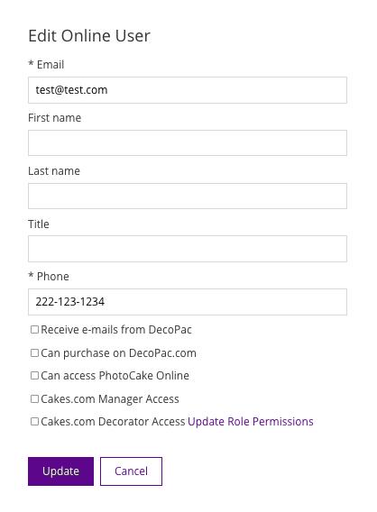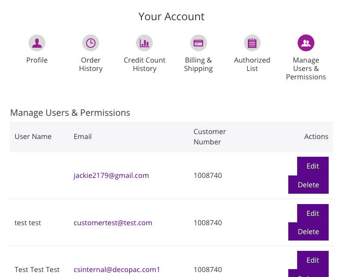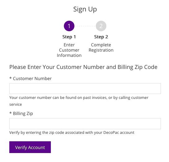 • Additional Users for your account are made by creating another user profile on DecoPac.com. Use the same Customer Number and Billing Zip Code as the Account Admin. Each user profile must be assigned an unused email address.