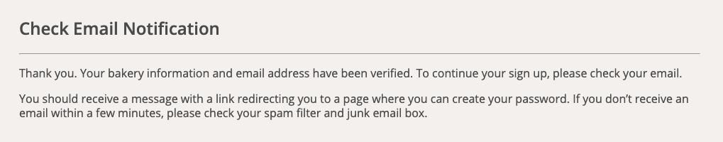 5. An email will be sent to you confirming your account setup has been a success. This confirmation email will also provide a link to create your account password.